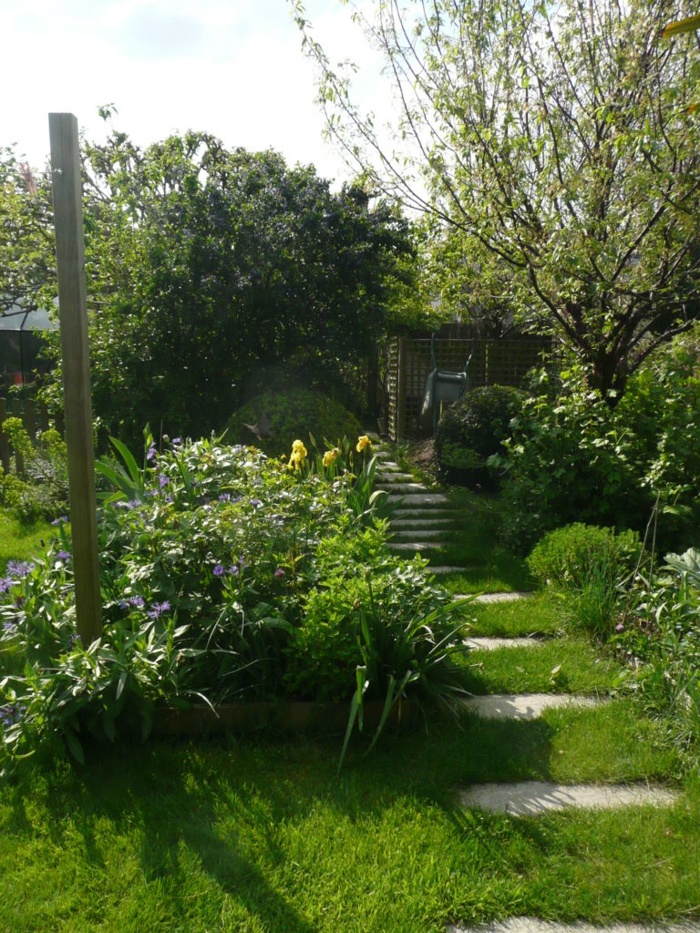 Nous avons travaillé le projet en chambres paysagères successives pour développer l’impression de découverte dans ce petit jardin de ville. Un poulailler y a même été intégré.